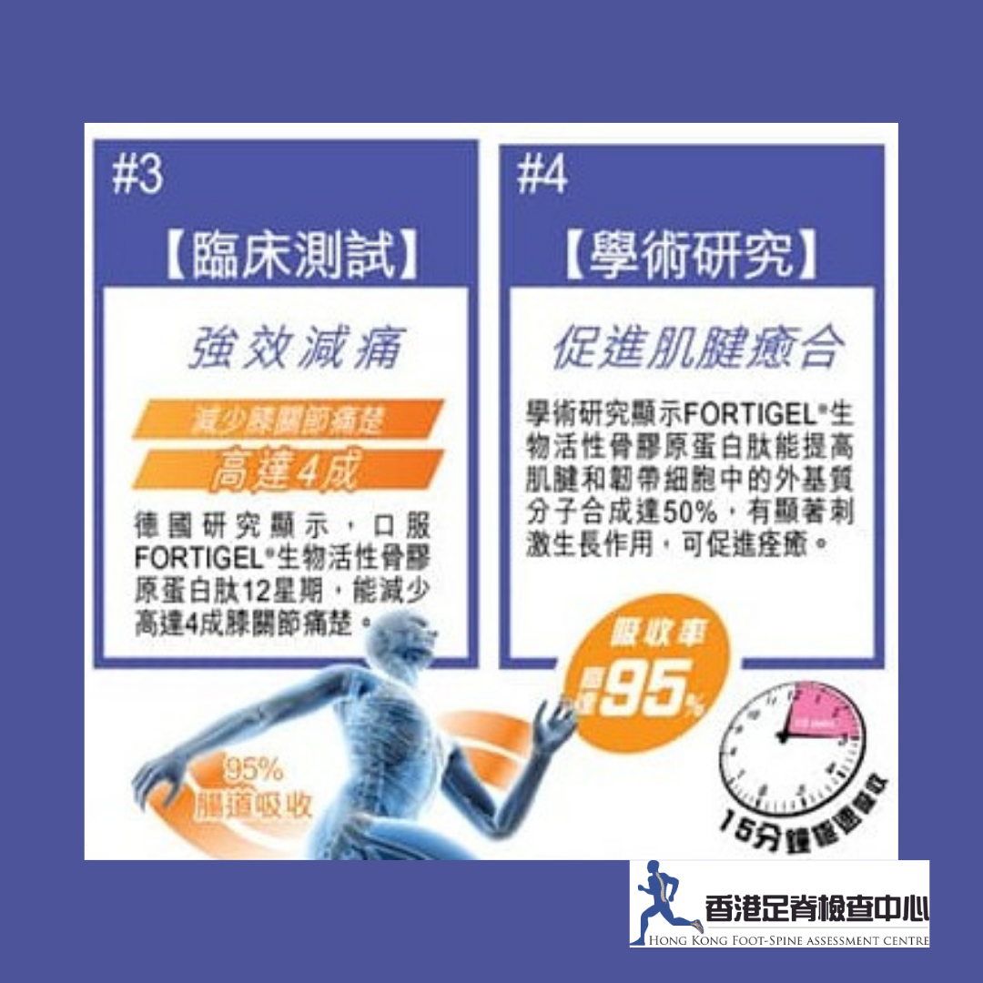德國研究顯示,口服FORTIGEL®生物活性骨膠原蛋白肽12星期,能減少高達4成膝關節痛楚。